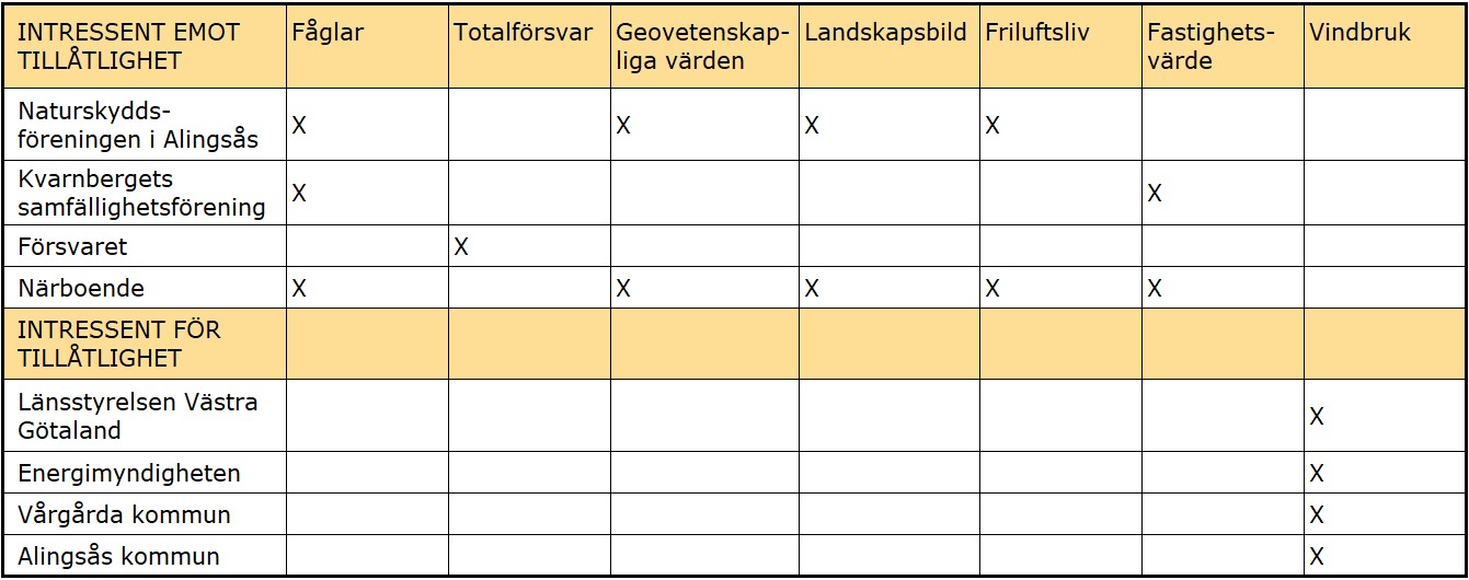 Naturskyddsföreningen i Alingsås visade stor oro för hur arten samt friluftslivet skulle påverkas av en vindkraftspark i området. Naturskyddsförening uttryckte även oro för en rad andra fåglar som till exempel för häckningsplatser för orre och tjäder. Kvarnbergets samfällighetsförening ansåg att parken skulle få negativ påverkan på fågel-och friluftsliv.