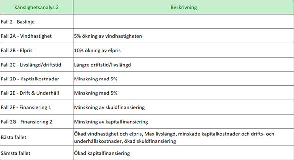 Vindkraftspark/utformning 2 har en högre navhöjd, 150 m i stället för 100 m, och får då en högre medelvind på 8,2 m/s vilket också ger en högre elproduktion. Beräkningen av inkomster och utgifter visar att vindkraftsparken har möjlighet att bli lönsam.